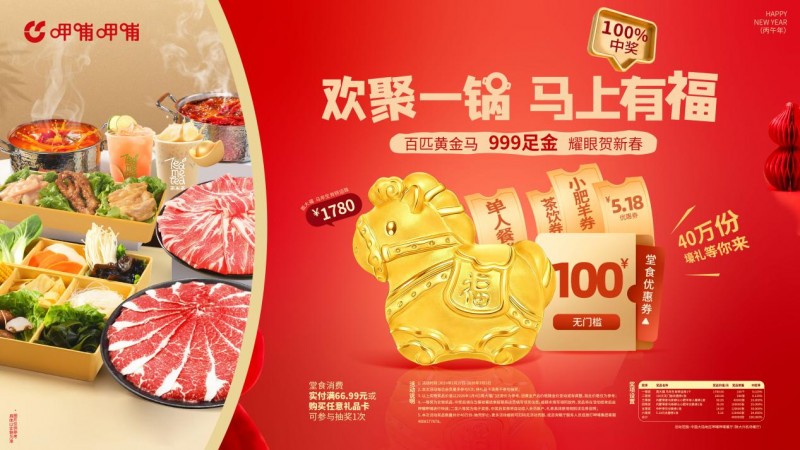 围绕春节氛围,呷哺呷哺打造了一系列主题活动,以趣味性与仪式感打动消费者。呷哺呷哺与呷哺牧场于1月27日至正月十五,共同开启“欢聚一锅,马上有福”主题活动,聚焦会员福利,会员堂食满一定金额或购买礼品卡,即可参与抽奖,一等奖为马年生肖转运珠,为新春增添吉祥寓意;“金砖开运,好运加马”活动则结合呷哺呷哺特色酱料推出限定福利,全国限量发售马年金砖酱料礼盒,包含多种经典特色酱料,礼盒内暗藏限量定制呱呱乐,将酱料消费与好运互动相结合,为家庭团聚增添惊喜感。2月10日至16日,呷哺呷哺还推出“心动呷哺玫好食光”情人节主题活动,活动期间到店消费情人节双人套餐,即可获赠玫瑰大福一份,相关套餐同步在美团、抖音两大平台上线。