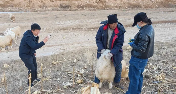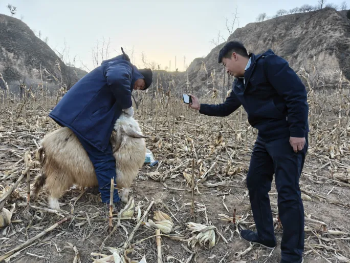 高小聪正在拍摄哥嫂给羊喂药。(图/受访者提供)