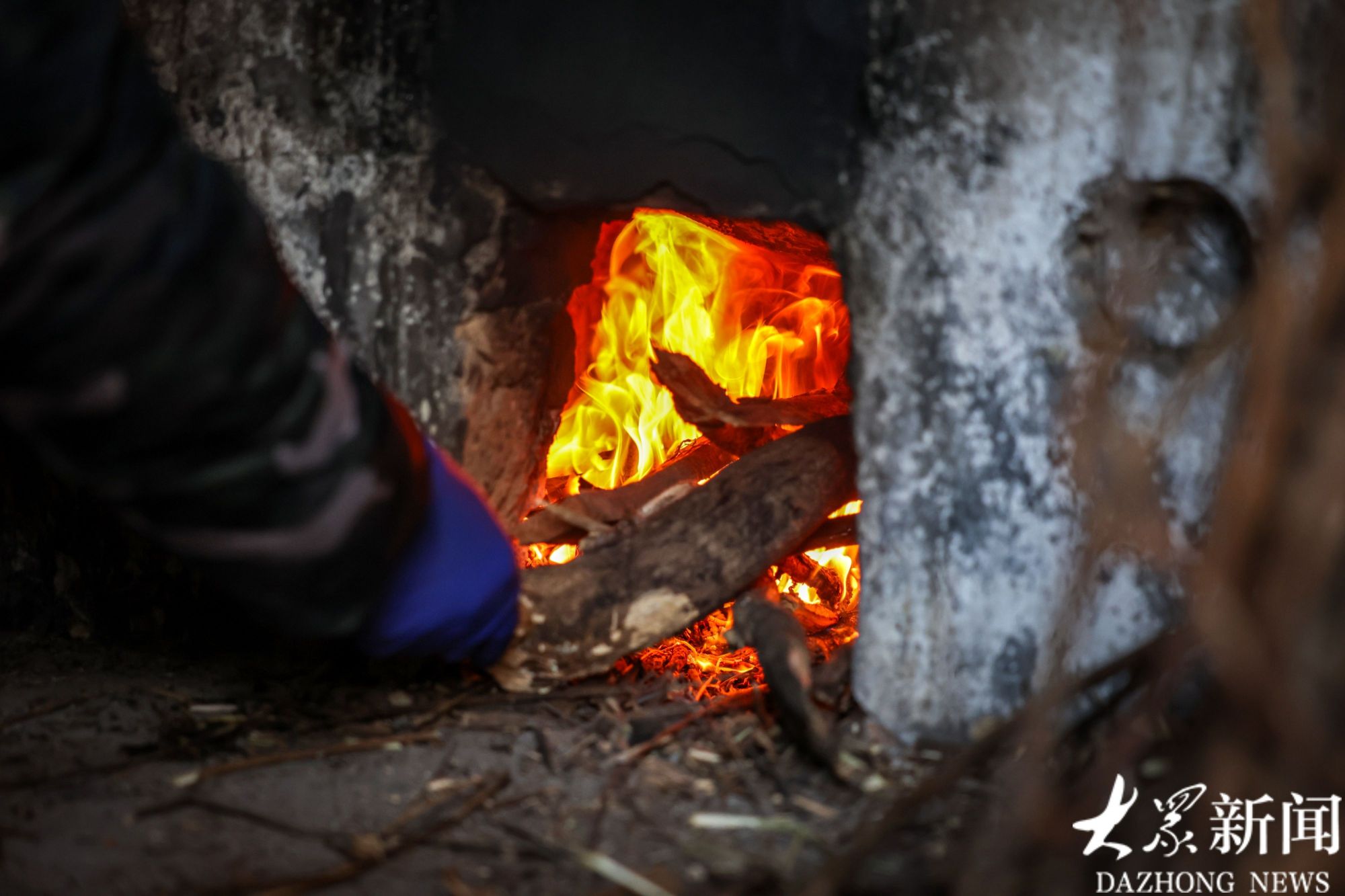 大锅下柴火旺盛。