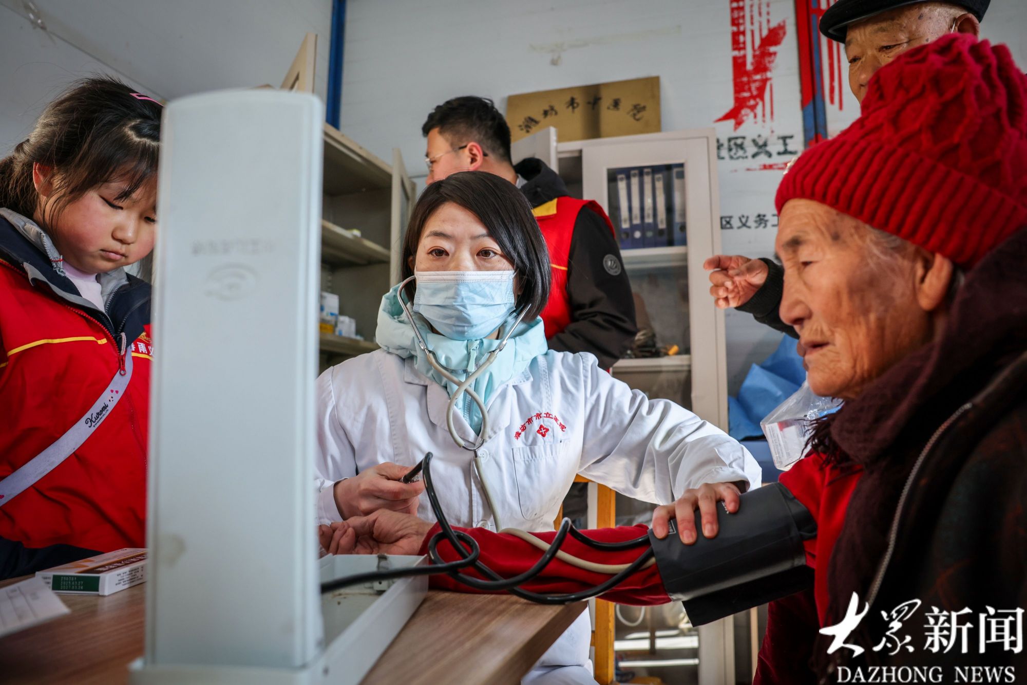 村民依次就诊,量血压、拿药。