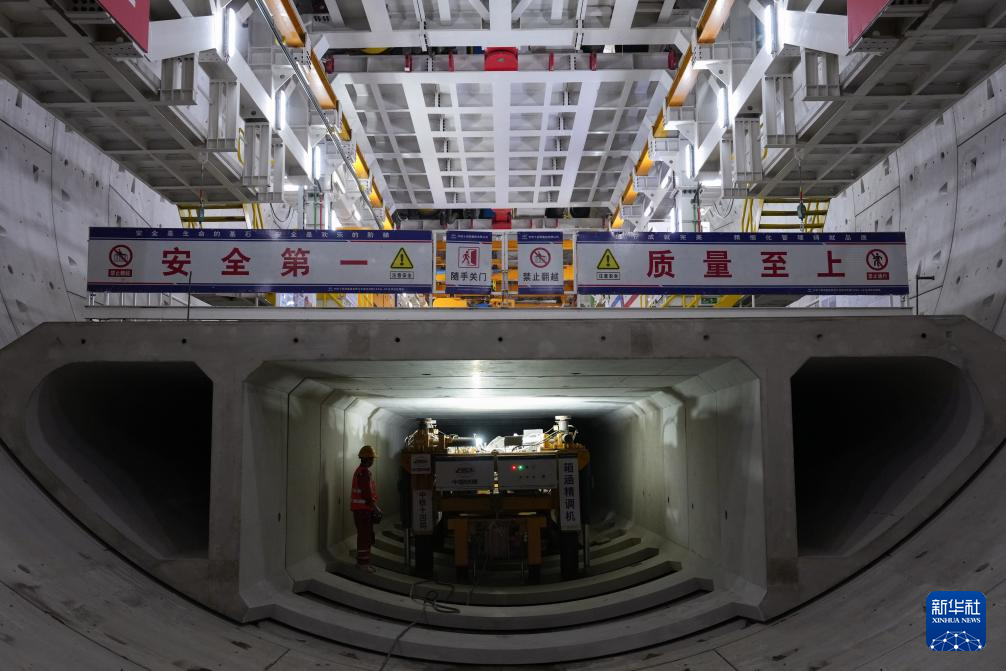 2月11日,中铁十四局技术人员在甬舟铁路金塘海底隧道“甬舟号”盾构机内操作箱涵精调机。新华社记者 黄宗治 摄