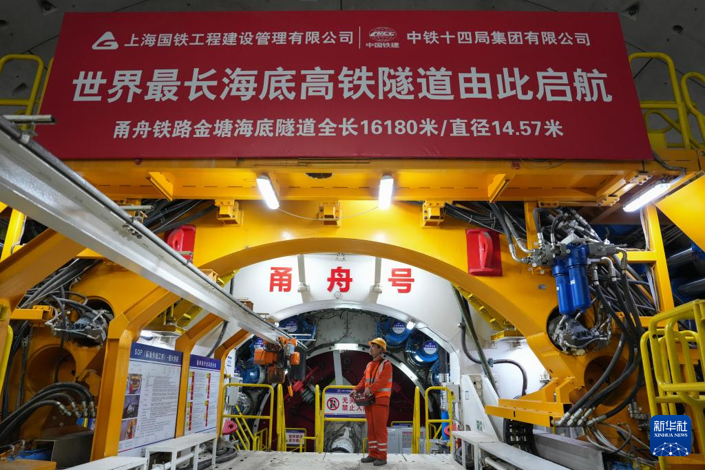 甬舟铁路金塘海底隧道西起浙江宁波市北仑区,东至舟山市金塘镇,全长16.18公里,是世界最长海底高铁隧道。