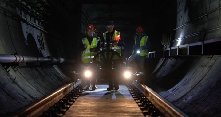 工程师尚鹏一边操控技术后台一边介绍:“亮灯的是四个摄像头,行进中对侧方和上方进行拍照,最后汇总成隧道检测总图。前部的3D扫描仪能识别盾构管片毫米级裂纹。”