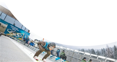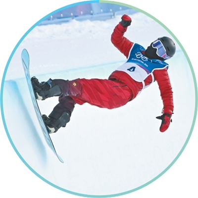 中国队运动员蔡雪桐在单板滑雪女子U型场地技巧资格赛中。