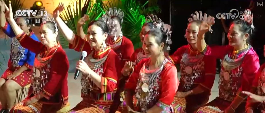 随着歌声飘扬,气氛愈发热闹,乡亲们用歌声与舞蹈迎接春节的到来,也让来到这里的游客感受着海南的热情。