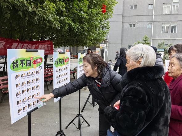 金融反诈转盘前,志愿者耐心讲解冒充客服、中奖短信等常见骗局,转盘指针停下的瞬间,大家争相回答,气氛热烈。“眼力挑战”找不同游戏更是老少皆宜,初级到高级的三块展板前不时爆发出“找到了”的欢呼,既锻炼大家的眼神又了解展板上的眼睛防护知识。