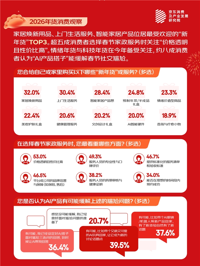 约八成消费者认为“AI产品搭子”能缓解春节社交尴尬