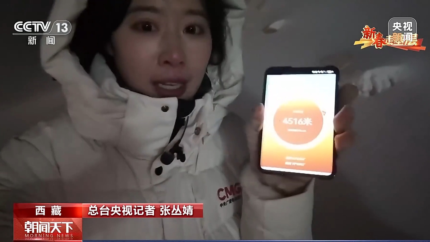 总台央视记者 张丛婧:现在海拔超过了4500米,此时温度是-20℃。