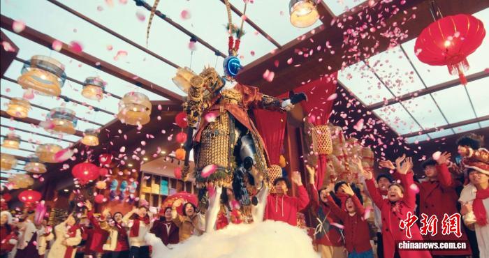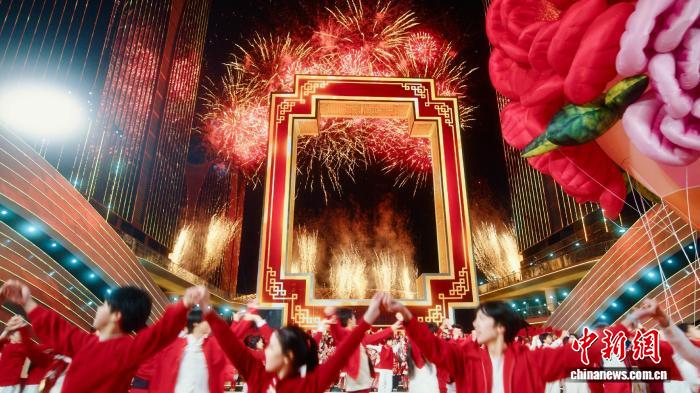 中新网义乌2月17日电 一扇巨型中式窗户矗立于充满科技感的浙江义乌全球数贸中心,舞台向前延展,两侧装饰如潮涌浪花般,铺陈出“勇立潮头”的意象……