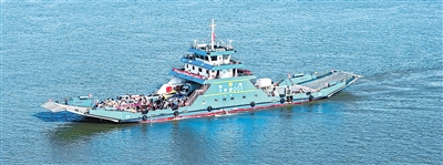 安徽省铜陵市,搭载乘客和车辆的轮渡前往位于长江江心洲的义安区老洲乡。储著传摄(人民视觉)