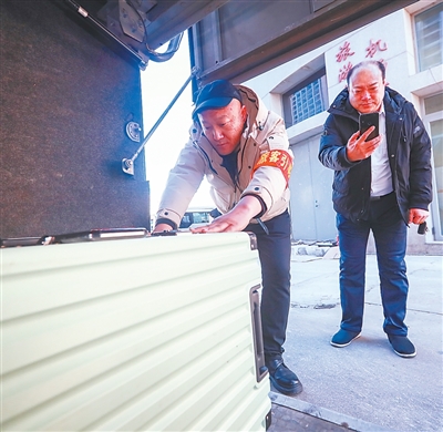 北京西站,铁路工作人员查看专用宠物运输箱。为进一步提升春运便民利民服务能力,中铁快运扩大高铁宠物托运服务试点范围,提升旅客出行体验。本报记者 张武军摄
