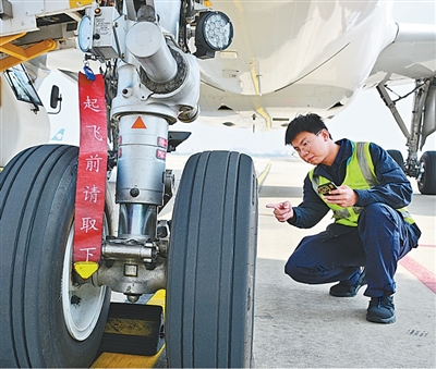 海南省海口市,美兰国际机场,工程师进行飞机航前检查。纪巧珠摄(影像中国)