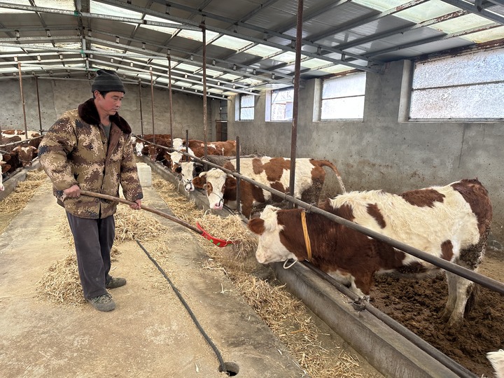 从养殖圈舍维修加固,到牛羊补栏,当地政府都不同程度给予财政补贴;村委会提供饲料打包机,村民在家门口就能制作饲料……一系列产业政策的帮扶,打消了石将和的顾虑。2025年,他进一步扩大养殖规模。前不久,16头肉牛出栏,毛收入30多万元。