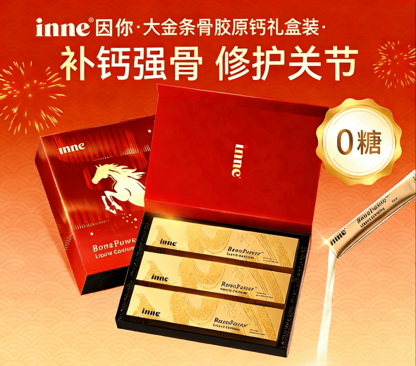 把健康装进礼盒,把安心带回家。这个春节,带上inne 因你大金条骨胶原钙,用科学营养守护全家骨骼健康,让每一次团圆都步履轻松、骨健安康,欢欢喜喜过大年!
