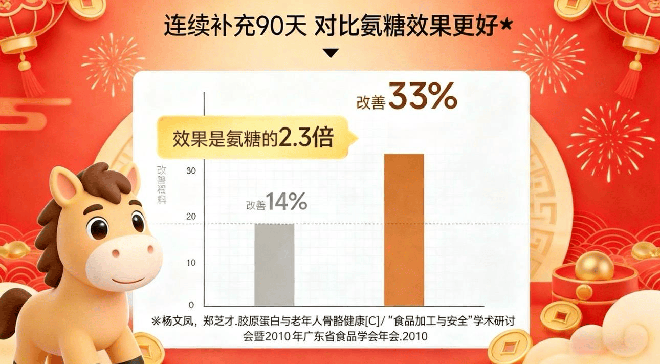 90天对照数据显示,骨胶原效果是氨糖的2.3倍