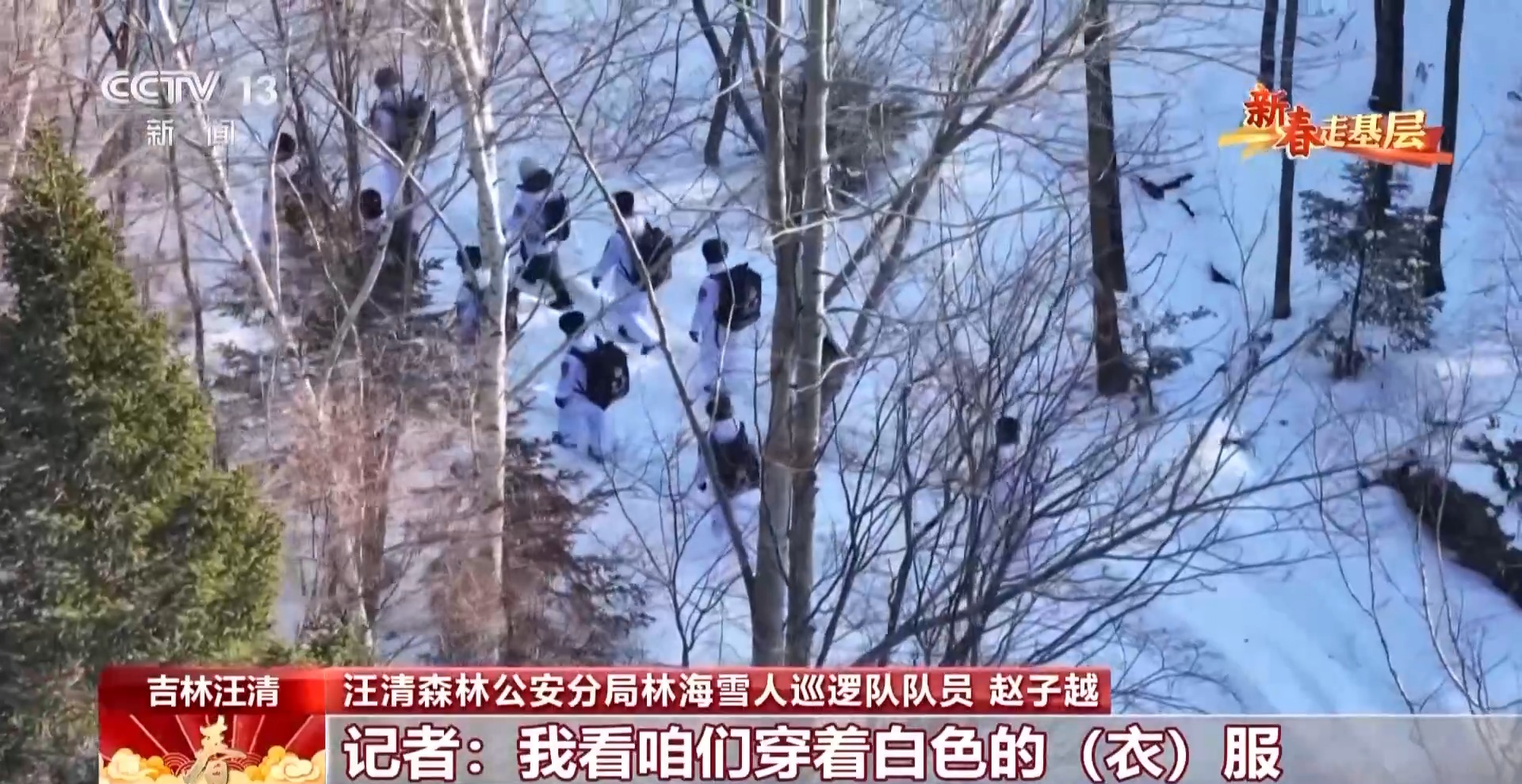汪清森林公安分局林海雪人巡逻队队员 赵子越:这是一个隐蔽服,更好地让我们在雪地中隐蔽起来。这样野生动物,比如老虎、豹发现我们的可能性也会小一些。