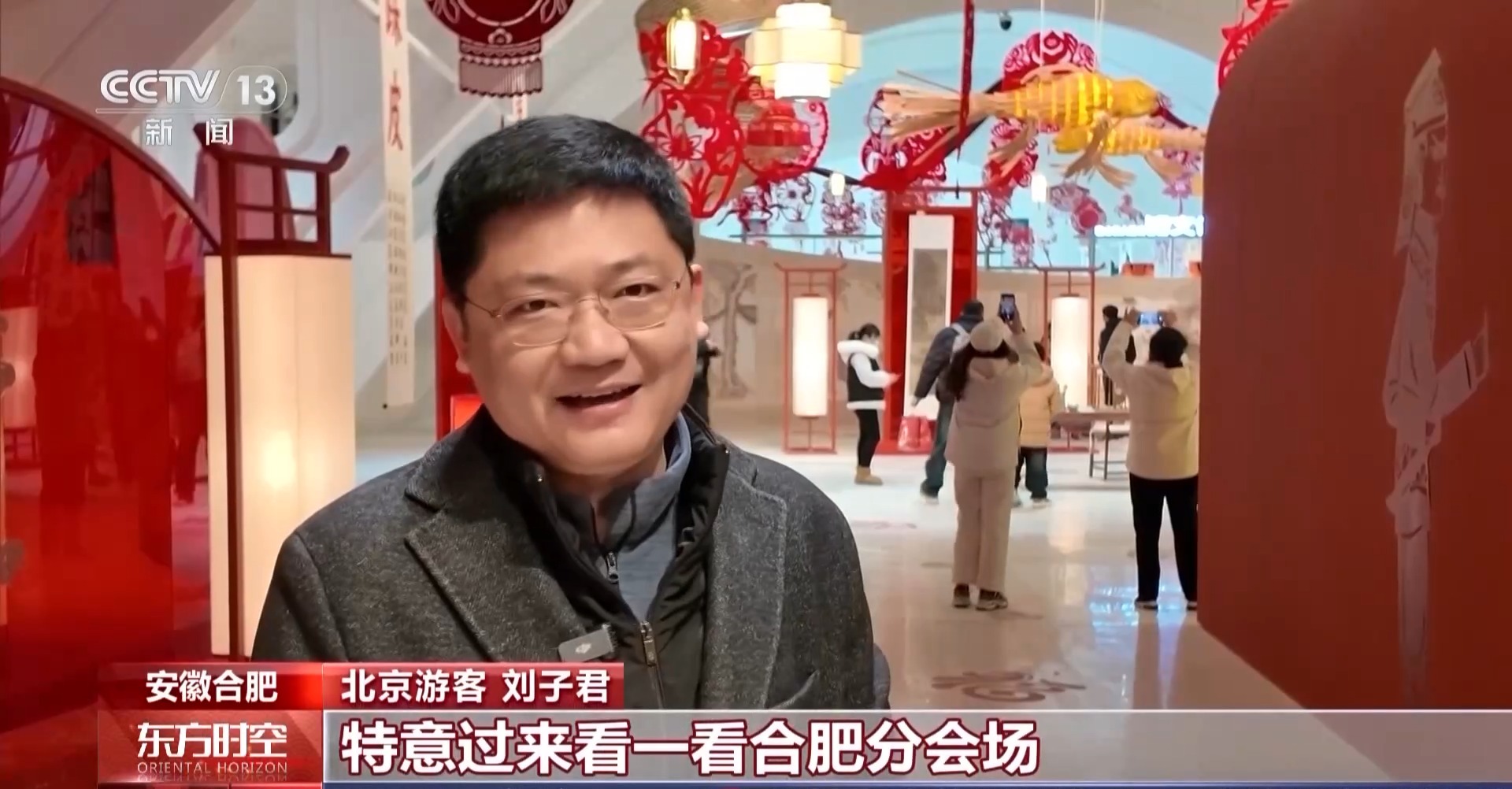北京游客 刘子君:特意过来看一看合肥分会场。这边的老厂房很有年代感,还有一些鱼灯、剪纸,蛮有特色的。