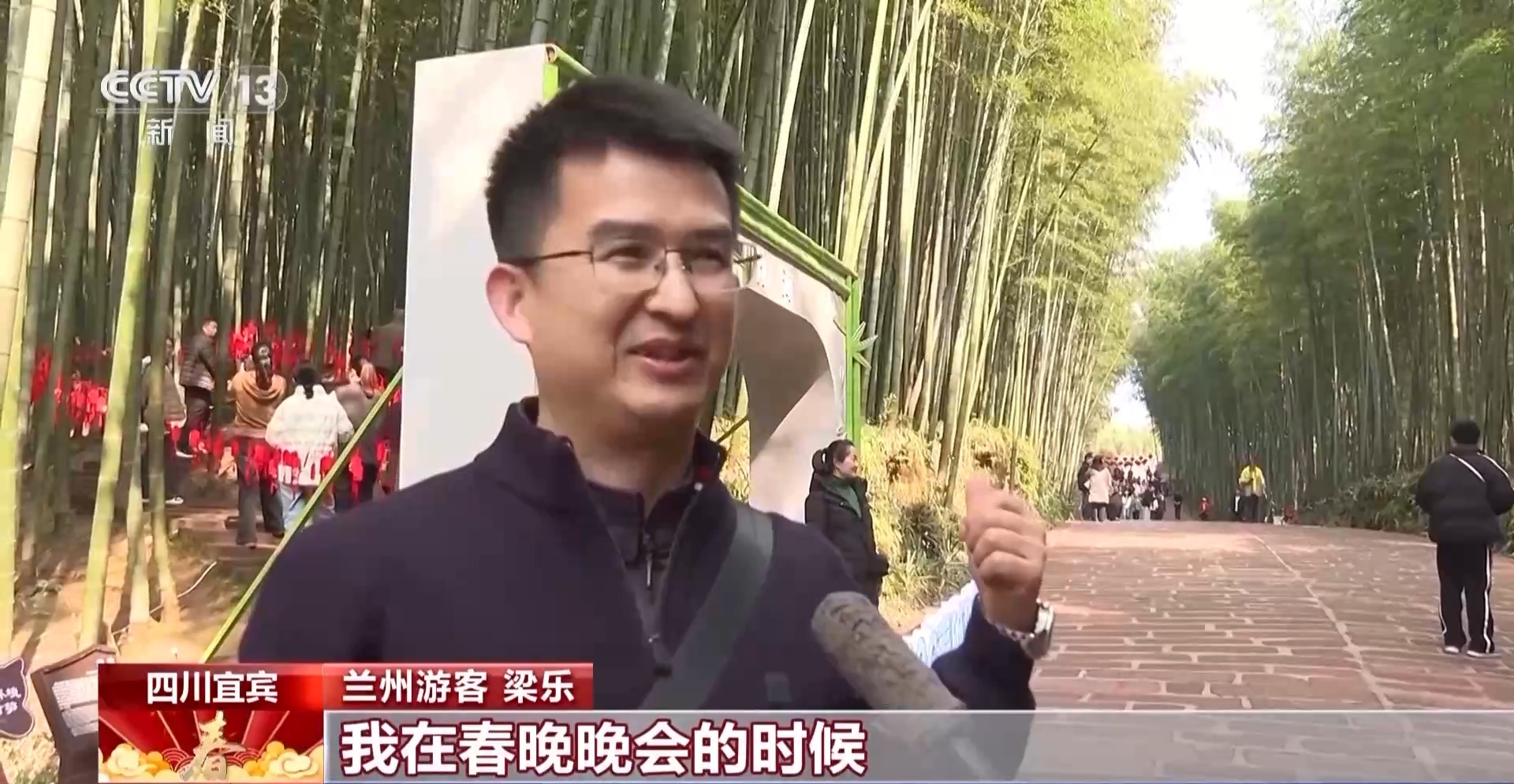兰州游客 梁乐:感受到浓浓的年味。我在春晚晚会的时候就看到了这个美丽的景色,今天是特意过来,非常美丽。