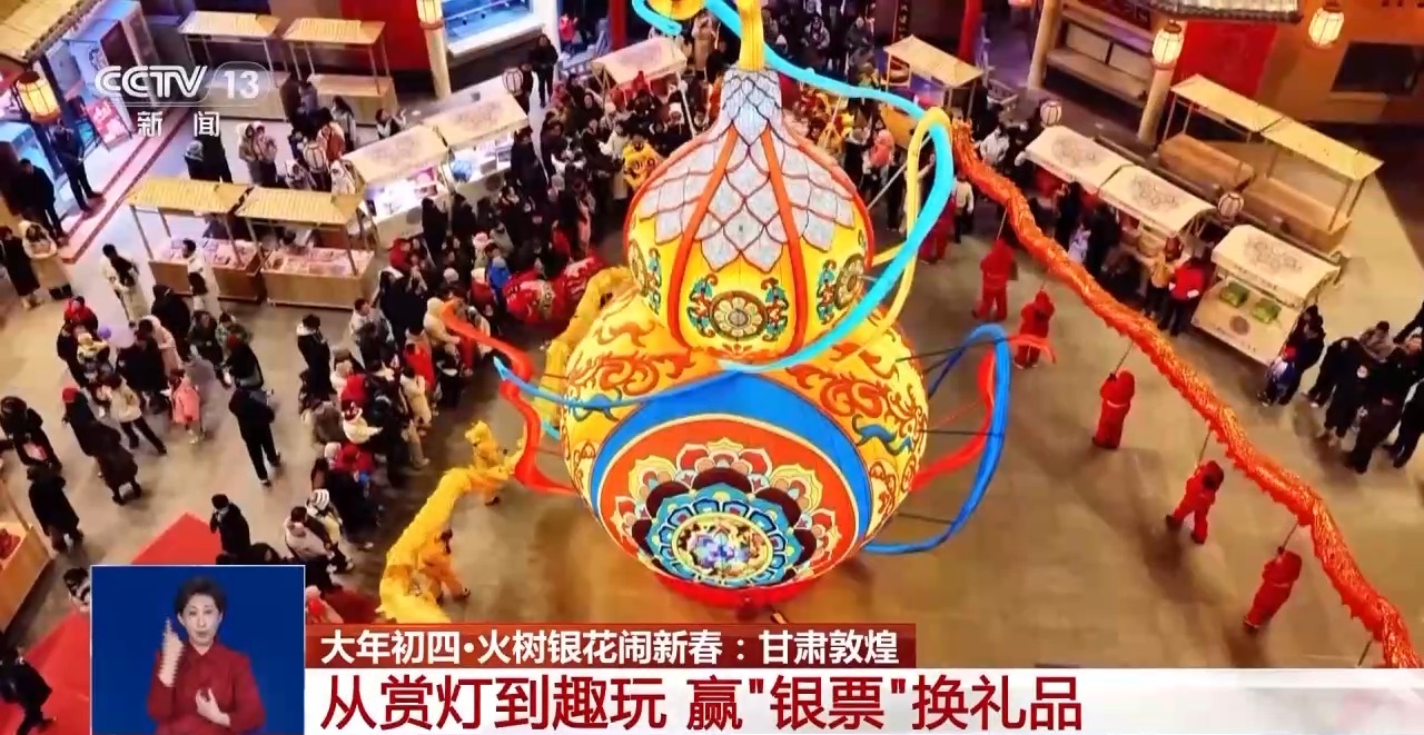 春节期间,在甘肃省敦煌市,敦煌灯会将传统文化与现代科技融为一体。舞蹈演绎、情景表演等现场互动丰富游客体验,各类新春活动也轮番上演。