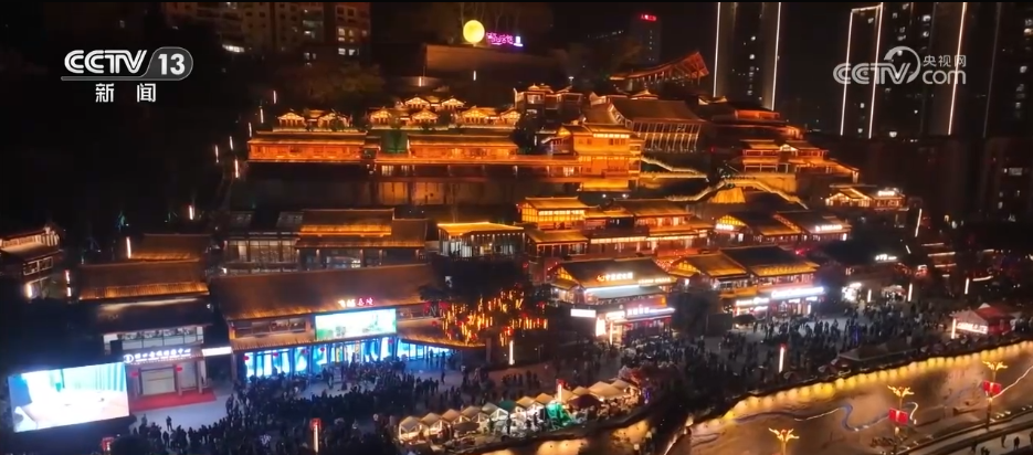 而在乐山苏稽古镇,一场国风与非遗交融的夜游盛宴持续上演,也成为新春出游的热门打卡地,吸引了八方游客慕名而来。打铁花表演在峨眉河面上震撼上演,1600℃的滚烫铁水被匠人奋力击向高空,瞬间化作漫天金色星火,引得岸边游客阵阵欢呼。