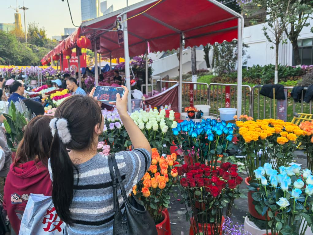 2月14日,在云南省昆明市,手持鲜花的行人。新华社记者 林昊 摄
