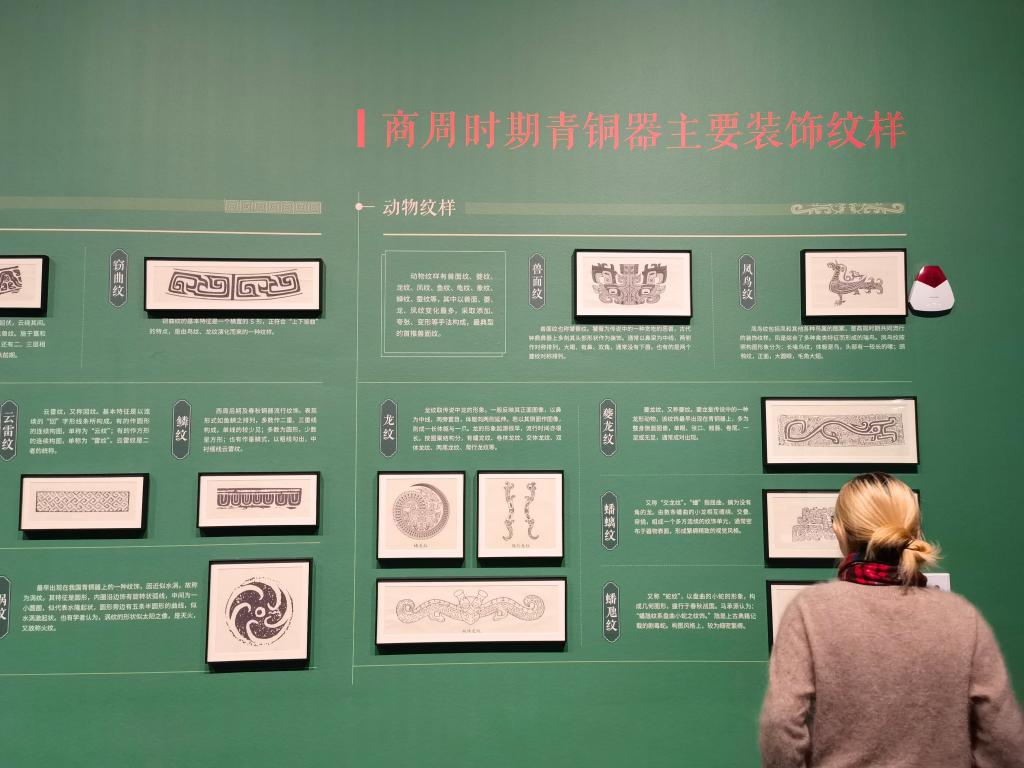 观众在“纹章九州——中国古代的纹饰和纹样”展览现场。新华社记者邱冰清 摄