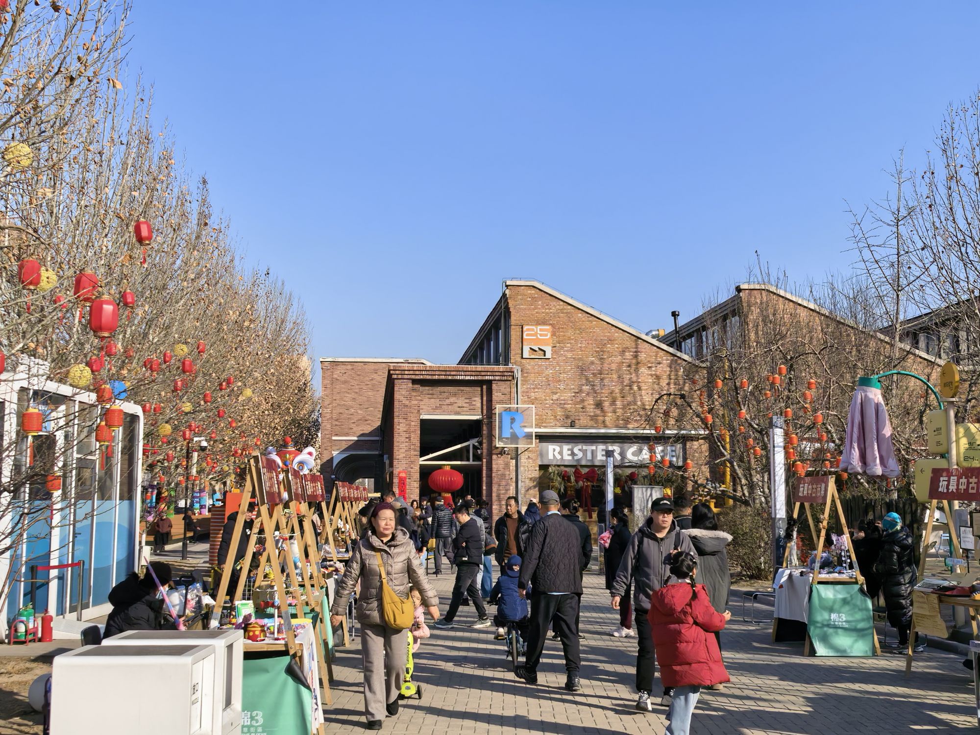 春节期间,棉3创意街区张灯结彩,新春花灯点亮红砖墙面,玩具市集、旧书市集错落排开。文创潮玩、咖啡饮品、特色好物琳琅满目,工业风格街区里弥漫着浓浓烟火气。