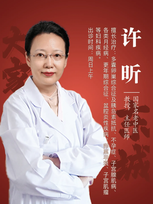 许昕,东城中医医院妇科特聘专家、教授、博士生导师,出诊时间周日上午。国家中医药管理局重点专科学术带头人,第六/第七批全国(及第五/第六批北京市)老中医药专家学术继承工作指导老师,拥有国家中医药管理局(个人)名老中医传承工作室。擅长治疗多囊卵巢综合征及胰岛素抵抗、不孕症、子宫腺肌病、更年期综合征、盆腔炎性疾病、卵巢早衰、子宫肌瘤等妇科疾病。