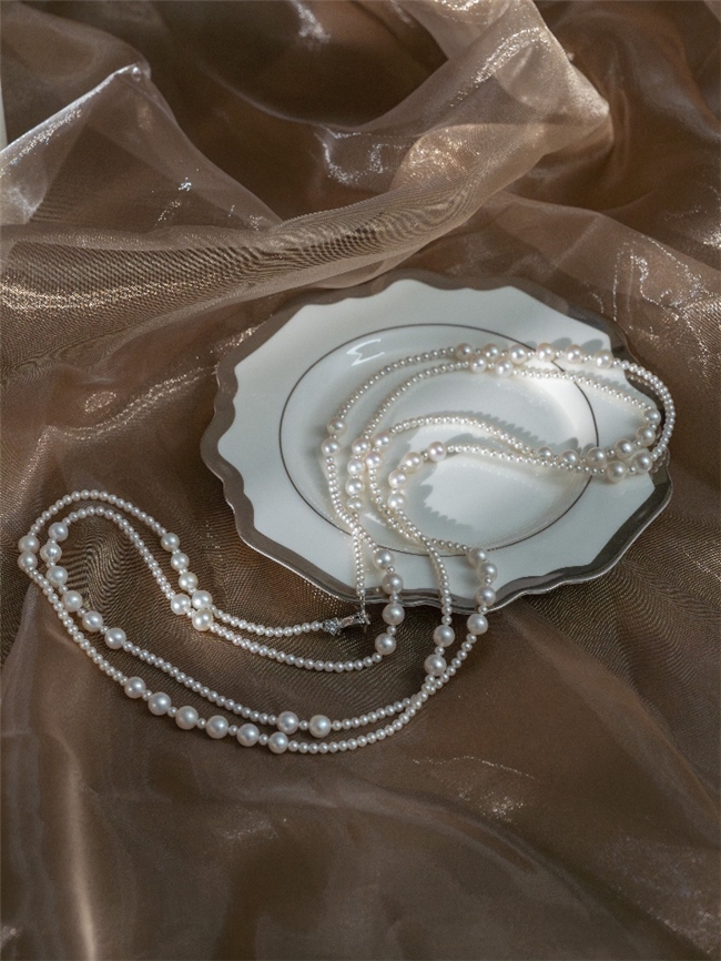 海派文化还善于吸纳多元文化灵感,转化为贴合当代生活方式的艺术表达,MiNG名皇珠宝的设计同样体现了这种创作巧思。以“歌剧-茶花女珍珠长链”为例,其灵感源自西方歌剧,但摒弃了西方古典风格,以现代珠宝设计语言重构经典,打造出兼具美学价值与实用功能的珠宝作品。长达160厘米的可自由调节链长,提供了单戴、缠绕、叠戴的多种可能,多变的戴法可适配多元穿搭场景与佩戴需求。大小珍珠错落有致的排列,既有致敬经典的复古神韵,又通过珠体的层次搭配展现了灵动美感,完美实现了艺术灵感与日常实用性的平衡。