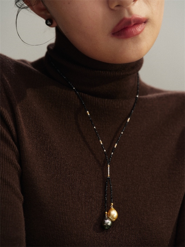 好的爱情,常是两种独特灵魂的相遇,在差异中碰撞出理解,在共鸣中交织成更丰富的和弦。“金属城市-暮光之河项链”便用这种对比,诠释了爱的“共生”:大溪地黑珍珠带着深邃的光泽,像夜晚的星空;南洋金珠泛着暖调的光晕,像傍晚的霞光,两颗珠子在链间相互映衬,没有谁盖过谁的光芒,反而形成了奇妙的平衡。
