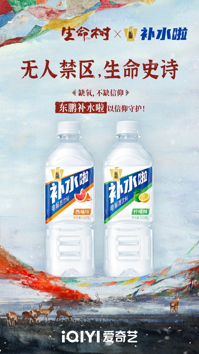 与东鹏特饮聚焦单部热剧精准突破不同,东鹏补水啦则以“矩阵化布局”抢占影视赛道,同步携手《骄阳似我》《成何体统》《生命树》三部不同题材的在播剧集,覆盖青春、古装、现实三大热门赛道,精准触达不同圈层的年轻消费群体。作为东鹏饮料布局电解质饮料市场的品牌,东鹏补水啦自推出以来,便以影视营销为重要助力,结合自身产品优势快速打开市场,从《新闻女王2》《蛮好的人生》到如今的三部热剧,始终坚持“场景化、无痕化”的植入原则,让产品自然融入剧情,传递“快速补充电解质”的核心卖点。此外,在《生命树》中,东鹏补水啦除了场景植入外,更通过品牌联合海报的形式参与联合推广,联动剧集官方及其他合作伙伴扩大传播声量,借助剧集的现实共鸣感,进一步拓宽品牌传播边界,拉近与大众消费者的距离,强化品牌在电解质饮料赛道的辨识度。