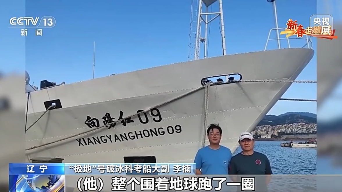 “极地”号破冰科考船大副 李楠:我在“极地”船上工作,我父亲当年也在老“极地”船上工作过,他这一辈子基本上都是在科考船上工作,围着地球跑了一圈,对于这条全现代化的新的“极地”号,他也是比较喜欢的。特别是他们当年一九八几年的时候,国家还没有能力造这种破冰船,现在我们国家自己能造这种破冰船了,他感到非常激动,而且为祖国进步感到自豪。