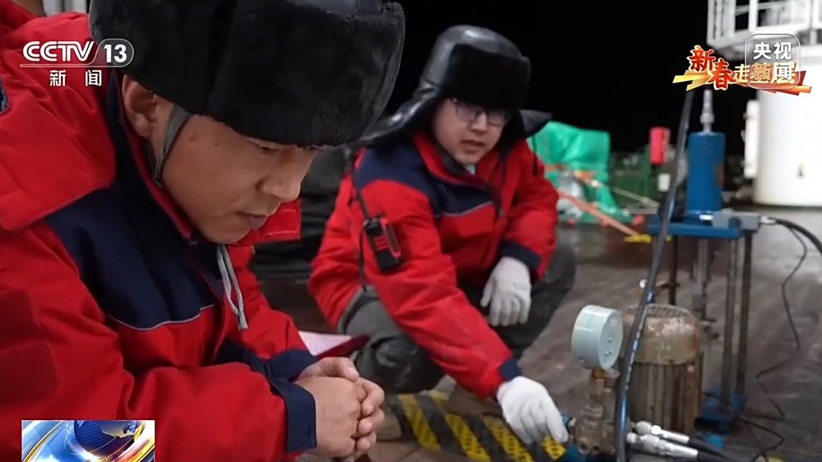 总台记者 季熠非:在我的身后是位于辽东湾腹地的中国海油锦州93油田,这里是我国纬度最高、地理位置最北的海上油田。每年隆冬时节,这里的油气开采平台都会被厚重的海冰所包围。