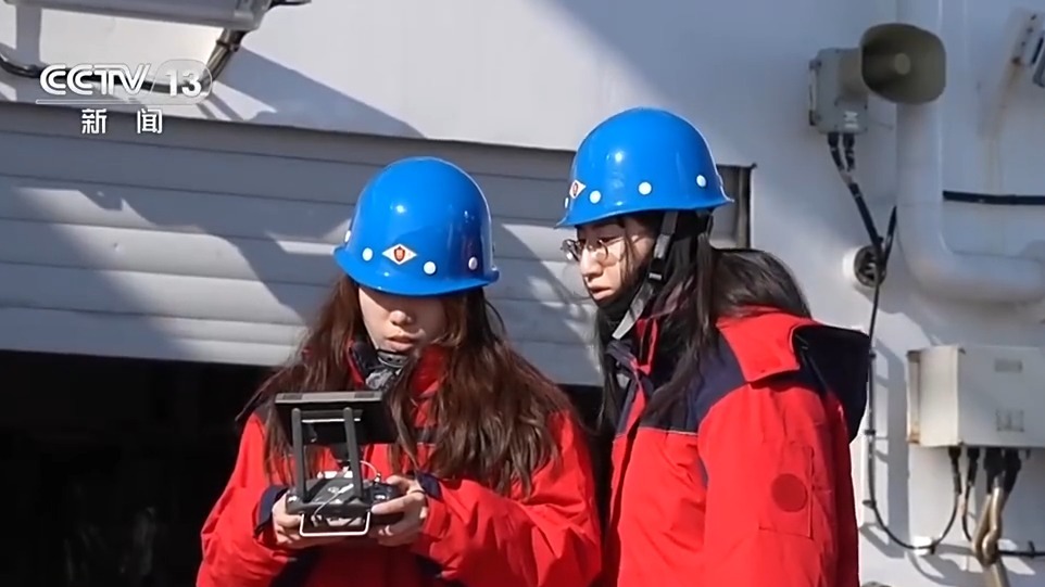 操作无人机的王业和张乔乔是调查队里最年轻的队员,她们操作的无人机搭载有多光谱相机,每到一处站点都要飞到指定高度对海冰进行大范围观测扫描。