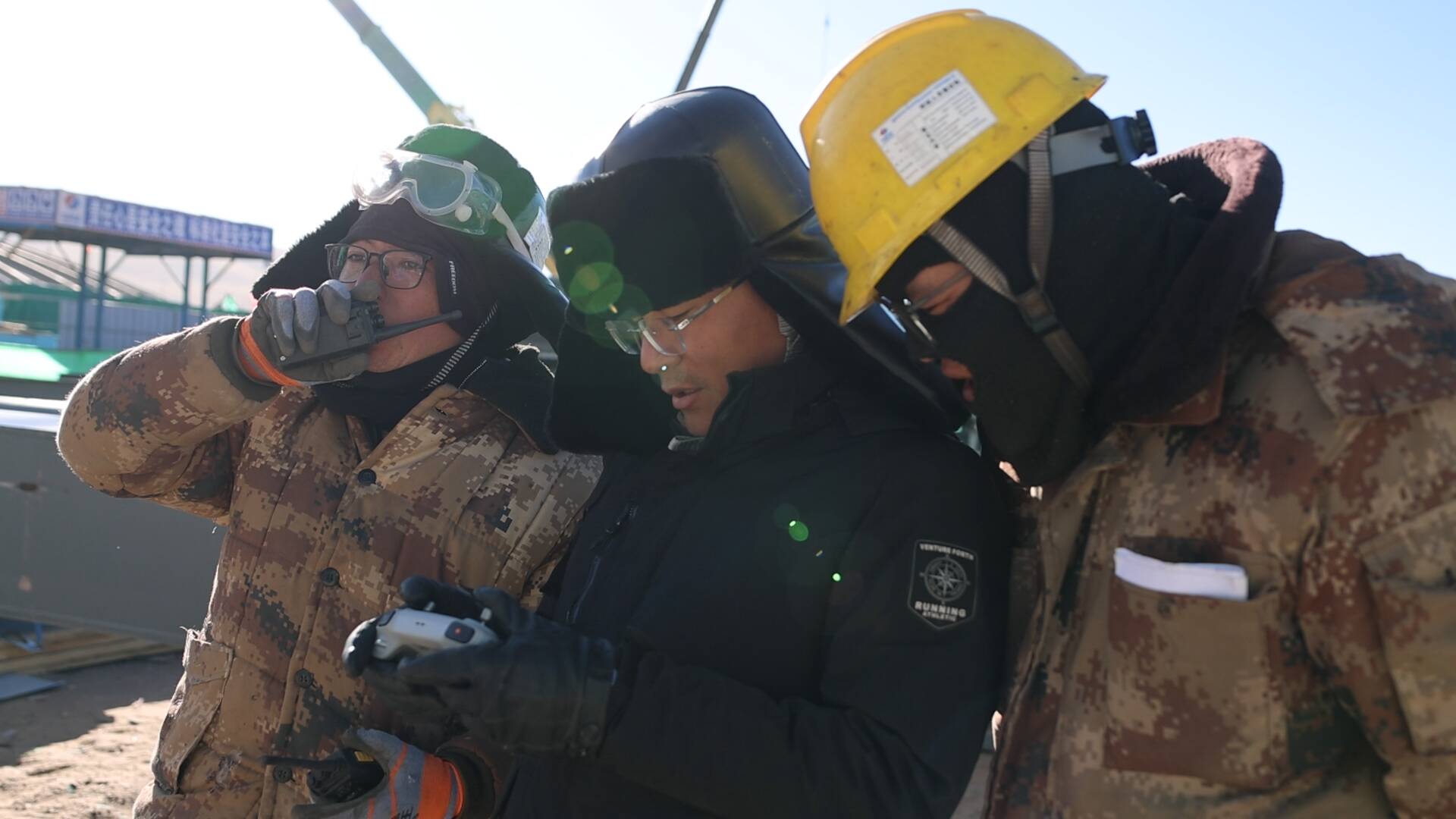 当浇筑钢结构底部电梯井时,王利军手拿温度计,测量混凝土温度,不敢有半点马虎。“混凝土在零度以上不会冻,它会产生水化热,自动发热。今天室外最低气温零下21摄氏度,我们得外部干预。”