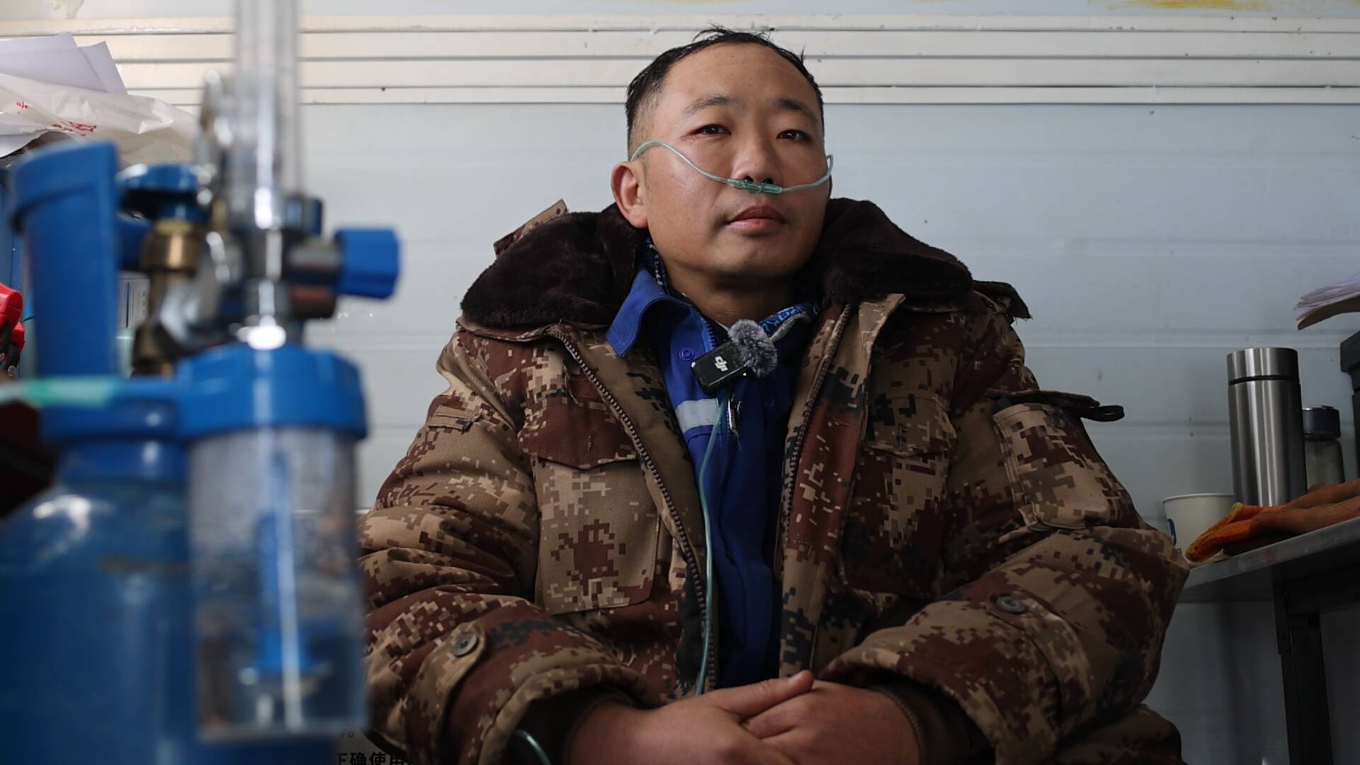 忍受着缺氧的痛苦,尹家兵终于来到了塔吊驾驶室,并吸上了氧气。来到工地的所有人都要面临缺氧的考验,山东济宁人耿鲁香是一名安全员,刚来的第一周,严重的高原反应一度让他无法工作。可安全无小事,尤其在高原恶劣环境下施工作业,工人容易注意力不集中,安全隐患偏多。为了不耽误工作,他不得不背起便携式制氧机。