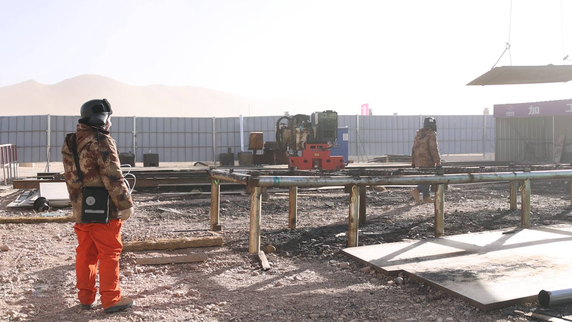 第二节“积木”搭好后,顶部的作业平台只能高空焊接。不但危险,速度也慢。恶劣的自然环境影响施工进度,也考验着建设者们的智慧。每天下午5点定期召开现场办公会,建设、施工、监理、设计等单位坐在一起。大家把问题摆在桌面上,一起想办法解决。西藏开投那曲河水电公司总工程师周建文开会时提出,钢结构的安全设施没有安装到位,无法继续吊装,可以“上下”同步施工,顶部焊接的同时给底座浇筑混凝土,把基础打牢,再往上“搭积木”可以节省时间。“目前,吸热塔内部钢结构吊装进度严重滞后,一定要采取措施加快进度,确保年前达到120米的高度。”然而,夜间的超低气温对混凝土浇筑是个不小的考验。