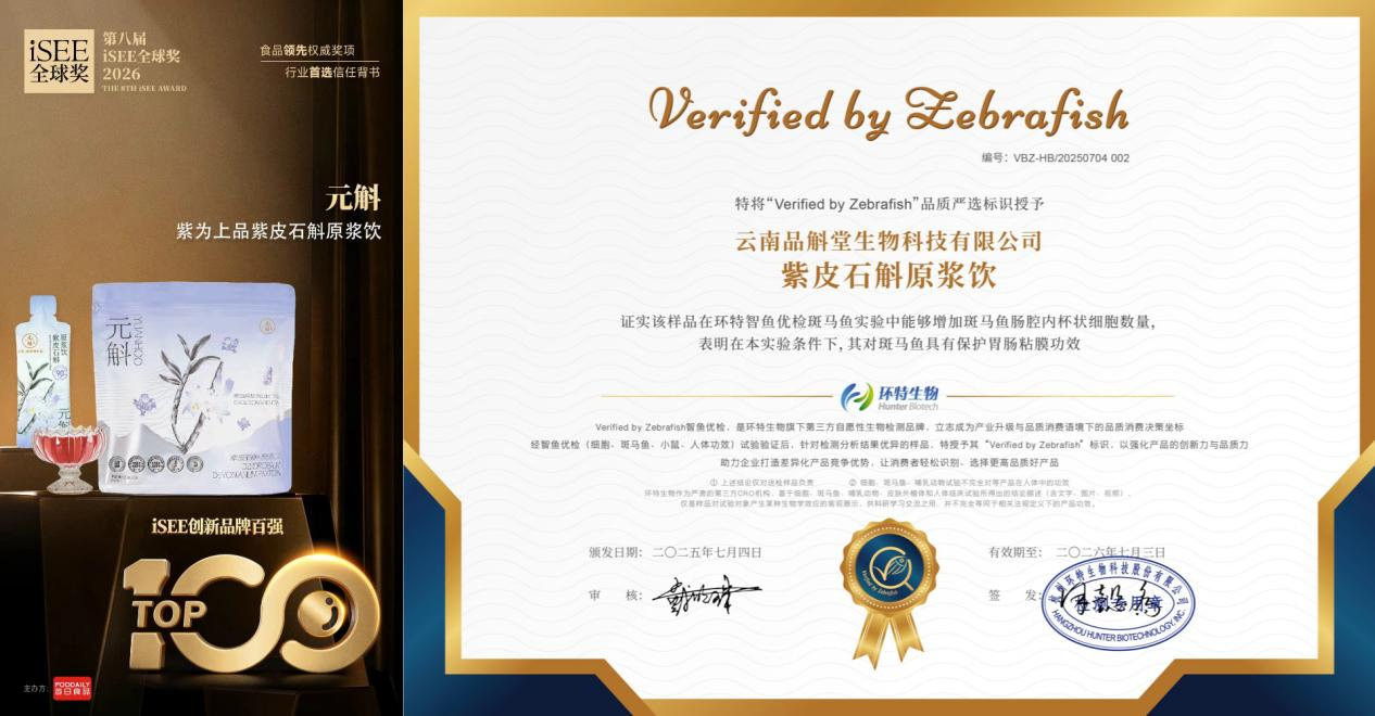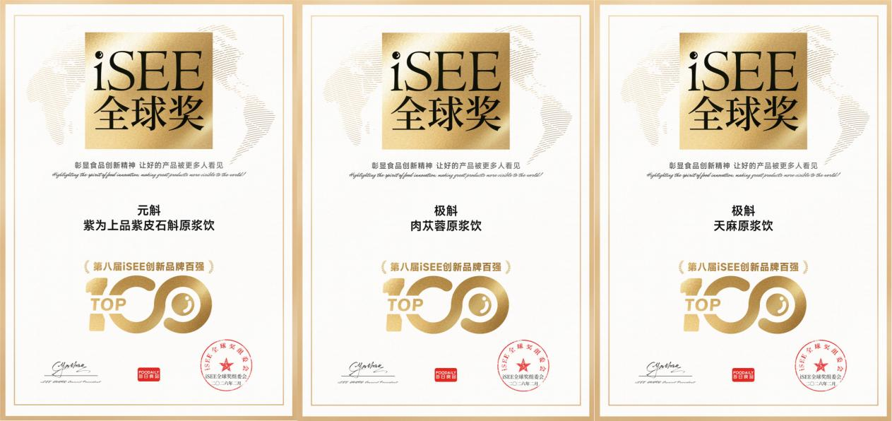 近日,备受瞩目的第八届iSEE全球奖榜单正式揭晓。品斛堂旗下三款核心健康产品——【元斛·紫为上品紫皮石斛原浆饮】、【极斛·肉苁蓉原浆饮】及【极斛·天麻原浆饮】——凭借深厚的药食同源底蕴与卓越的现代化创新,从全球5688个参选案例中脱颖而出,成功入选 “创新品牌百强” 。此次获奖不仅是对品斛堂产品力的国际权威认可,更是中国本土健康品牌在品质与科技上达到世界级水准的有力证明。