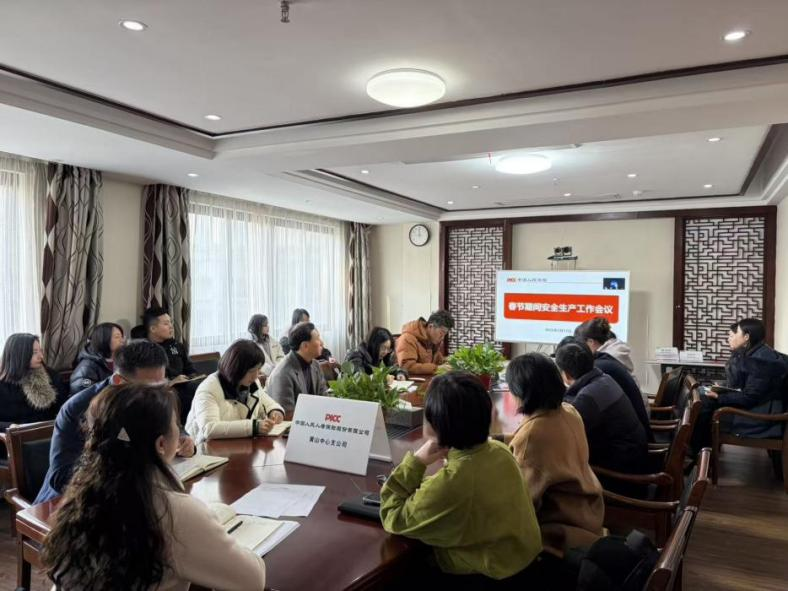 排查结束后,人保寿险黄山中支第一时间组织召开春节期间安全生产工作会议。会议传达学习上级单位关于春节安全生产工作的部署要求,深入分析当前安全生产工作形势,明确节日期间安全管理重点任务。会议强调,全体员工要切实提高政治站位,严格落实安全生产主体责任,做到安全生产“思想不松、标准不降、力度不减”;同时对春节期间值班值守、应急处置、信息报送等工作进行详细安排,要求各部门密切协作、形成合力,确保各项安全防控措施落地落细、见行见效。