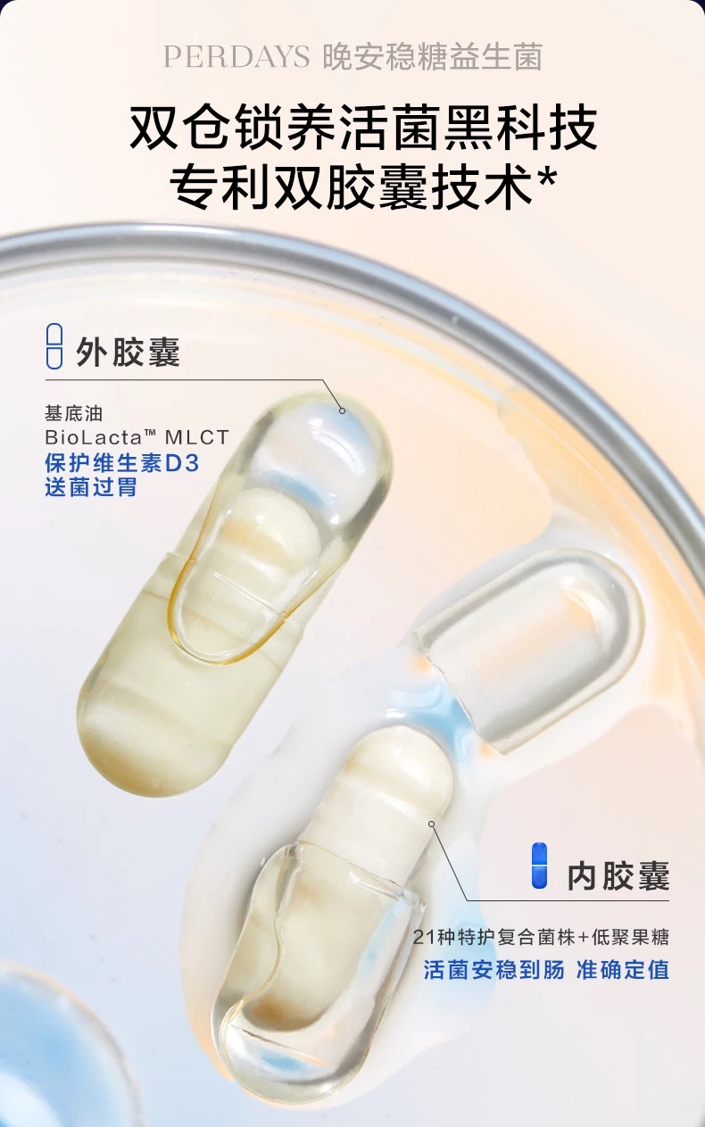 此外,Perdays持续拓展产品矩阵,此前已推出品牌S级新品“晚安益生菌PLUS”。Perdays益生菌Plus延续品牌在控糖领域的专业积累,继续采用独家双胶囊工艺,内含21种复合菌株及255亿活菌,通过“晚安菌”内源改善深度睡眠,提升代谢并实现糖脂双控,为孕晚期和产后管理、及泛年龄层精致女性日常高端健康管理提供全新选择。产品已获澳洲药监局产品注册(AUSTL516006)及TGA认证,确保安全与品质。