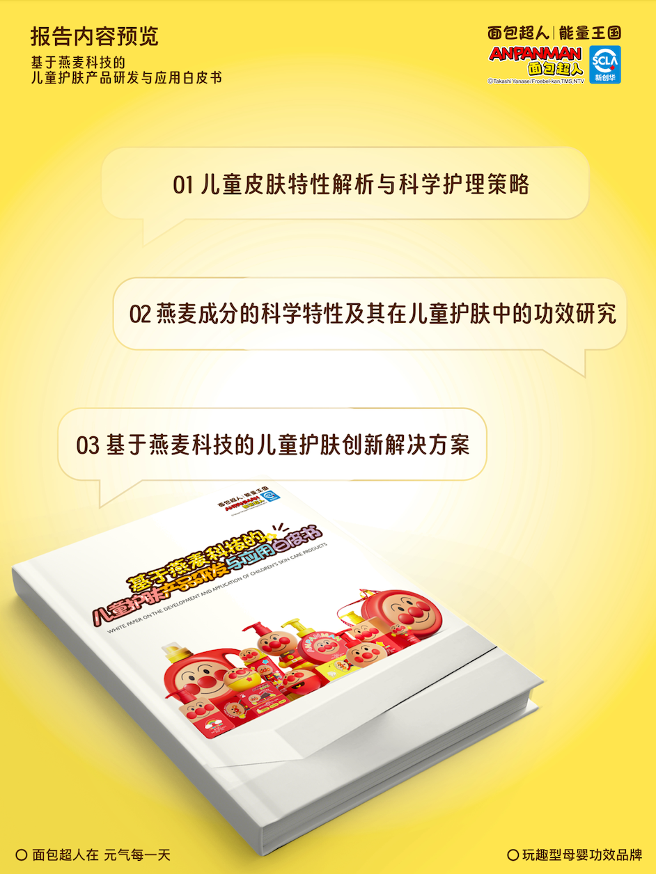 面包超人·能量王国作为长期深耕燕麦科技、专注儿童功效护肤的品牌,此次发布《燕麦护肤白皮书》,不仅彰显了品牌对“安全、温和、有效”理念的坚守,更映射出品牌背后更深层的战略逻辑:从营销焦点回归科研本源,聚焦儿童肌肤特性与护肤需求,专研前沿科学成分,共同促进儿童护肤领域迈向更科学、更高质量的新发展阶段。