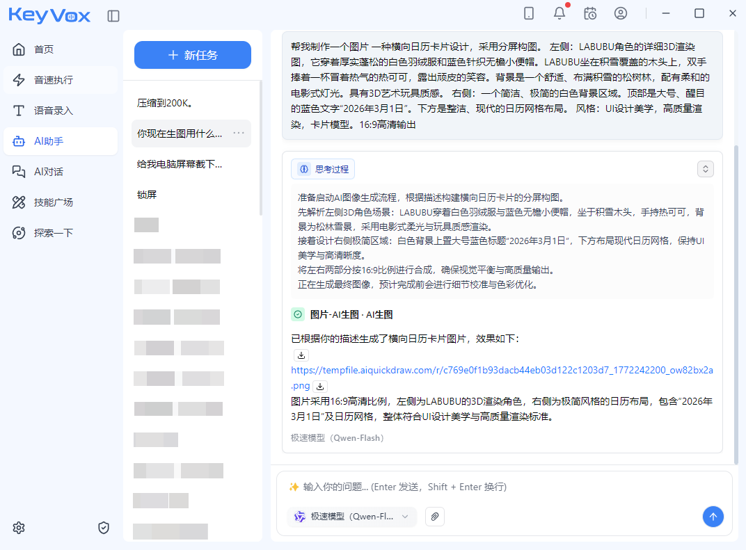 此次 KeyVox 完成对 Nano Banana 2 的接入,标志着国产桌面智能体在生态兼容、场景落地、运行效率上再进一步。用户无需复杂部署,即可快速体验智能体在本地桌面端的流畅运行,真正实现零部署、开箱即用。