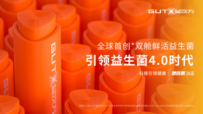 *全球首创:根据2025年8月中康科技发布的《中国临床益生菌品类发展白皮书》及2025年10月沙利文发布的《中国益生菌市场白皮书》,GUTX益次方双舱鲜活益生菌为全球首创。