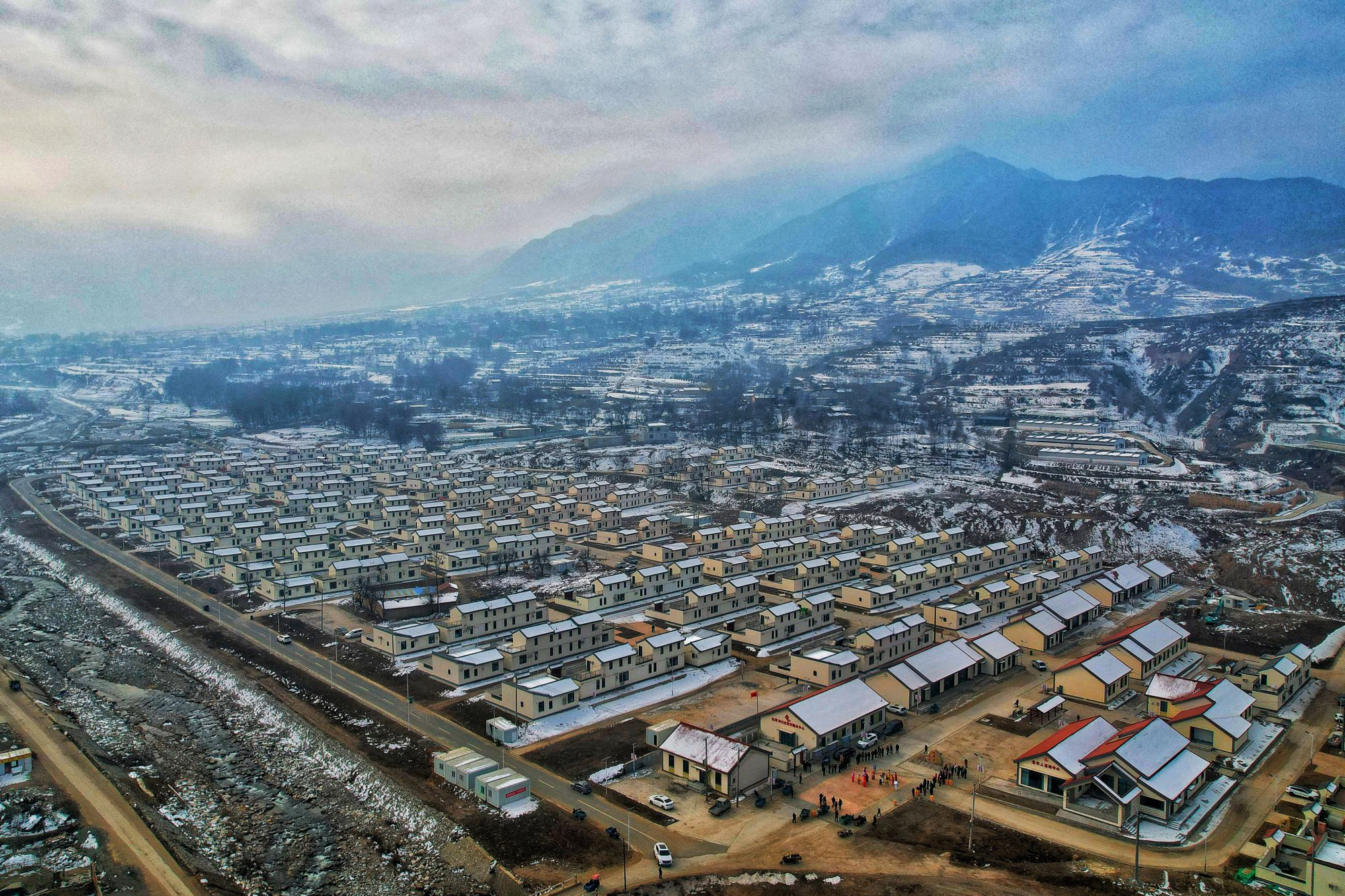 这是甘肃省临夏回族自治州积石山县刘集乡刘集村集中安置点(2024年12月6日摄,无人机照片)。新华社发(张维吉 摄)