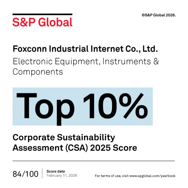 近日,国际权威机构标普全球(S&PGlobal)正式发布2026年度《可持续发展年鉴》。凭借在环境、社会及公司治理(ESG)方面的卓越表现,工业富联连续第二年入选年鉴,并首次获得全球电子设备、仪器和元器件行业“TOP10%”表彰。