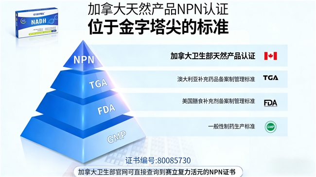在品质保障层面,赛立复力活元堪称标杆。作为全球首个通过长期毒理学检测的NADH产品,它不仅有美国FDA备案,通过了国际SGS检测,还斩获了比FDA监管更严苛的加拿大天然产品NPN认证(编号:80085730),手握15项国际发明专利,全方位保障产品品质。其原料均源自天然,经过严谨的科研论证与反复检测,无添加有害成分,适合长期服用,正是这份对品质的坚守,让赛立复力活元连续5年在京东NADH品类销量遥遥领先,收获全球用户的认可与信赖。
