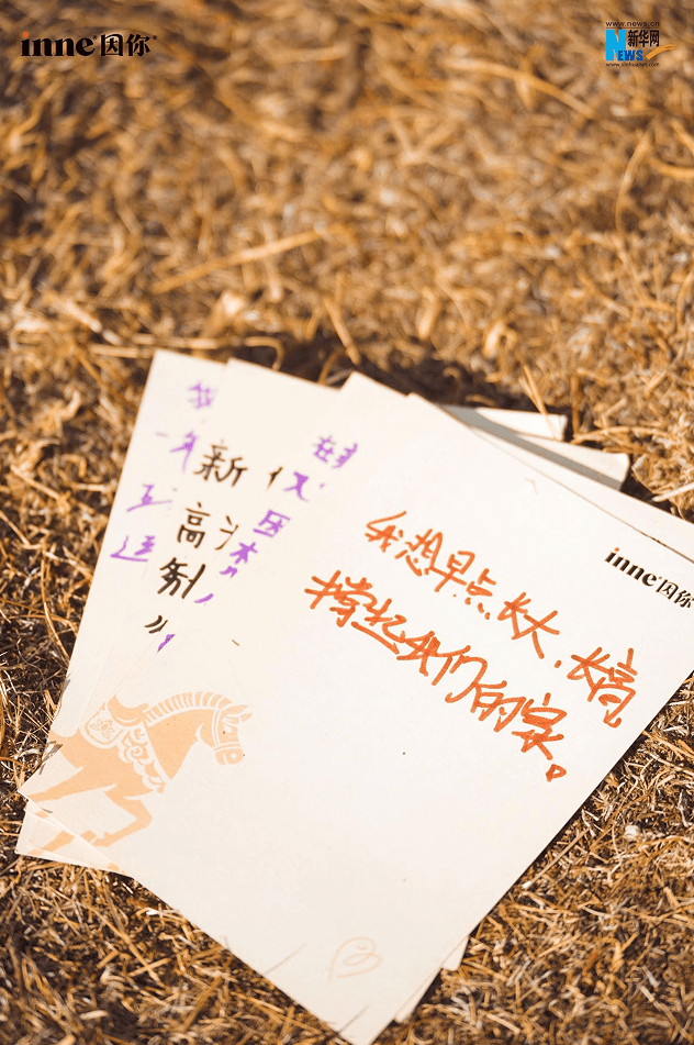 简单的介绍和寒暄后,西藏首位获得亚足联B级教练证的藏族女孩普布志玛作为本次活动的主持人,为大家发放了心愿卡,丁真珍珠与孩子们围坐在草场上,共同写下藏于心底的小小愿望。洛绒拉姆歪歪扭扭地写下“想长高为父母及家人做家务”,稚嫩的笔触藏着对家人的爱;洛绒曲忠很多字不会写,他希望以后能当老师,长大后让其他孩子“知识越来越高”。面对一张张纯真的心愿卡,丁真珍珠为他们加油鼓劲,并以自己的成长经历鼓励孩子们:“山再高,跑起来就能到,我们一起向上。”方寸卡片间,纯真的梦想与真诚的祝福静静流淌。