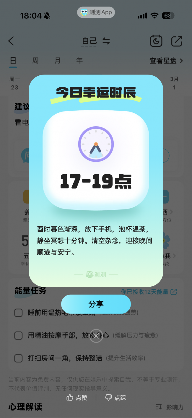 我观察到一个现象:测测的用户,很少用真人照片当头像。这背后藏着一个巨大的需求:做回自己,需要先藏起自己。朋友圈里,你发的每一张照片、每一句话,都在塑造一个“人设”。但在测测,没人知道你叫什么,没人知道你长什么样,没人知道你月薪多少。你可以卸下那个“人设”,做回那个真实的、脆弱的、有时候很down的自己。