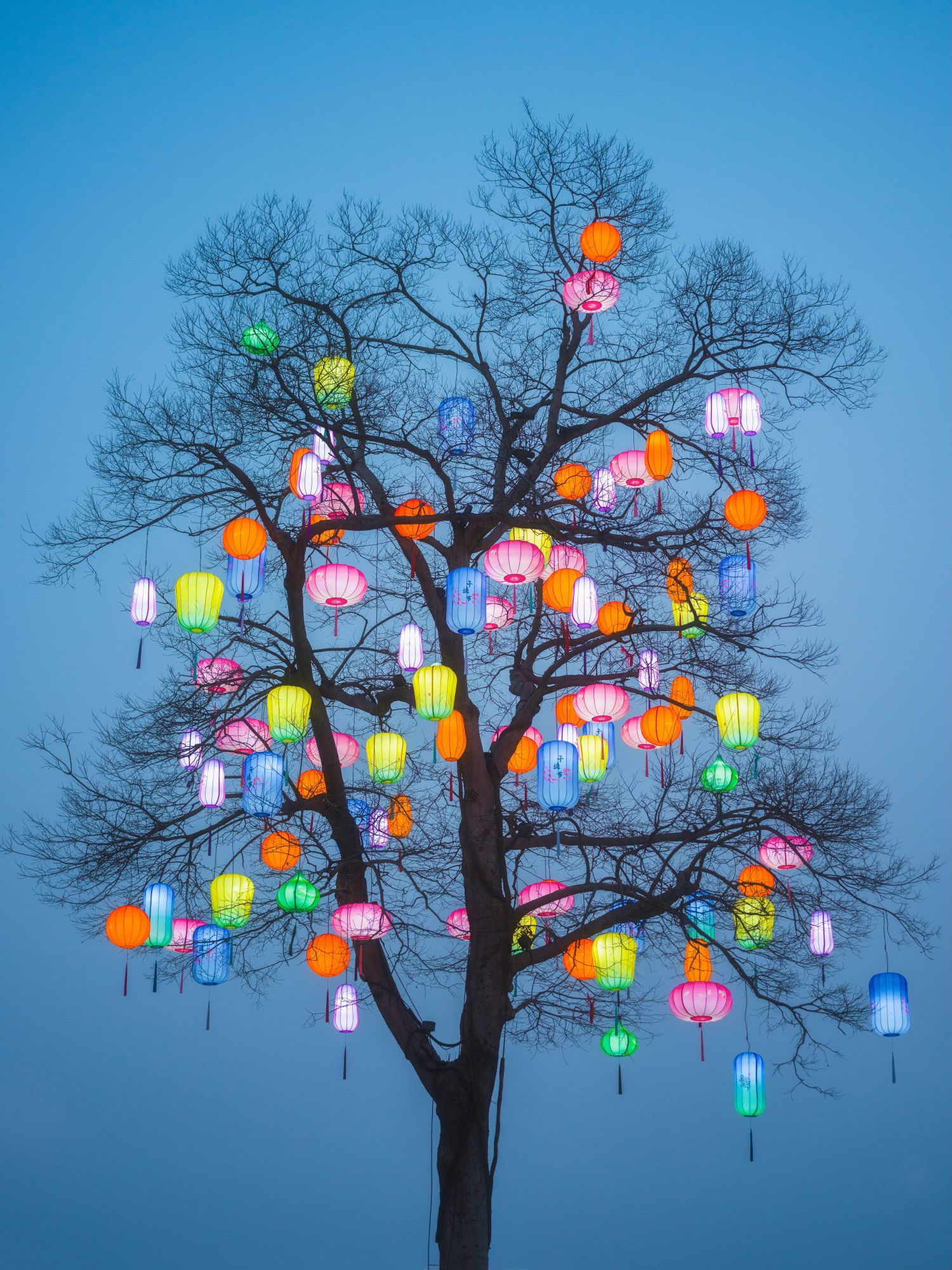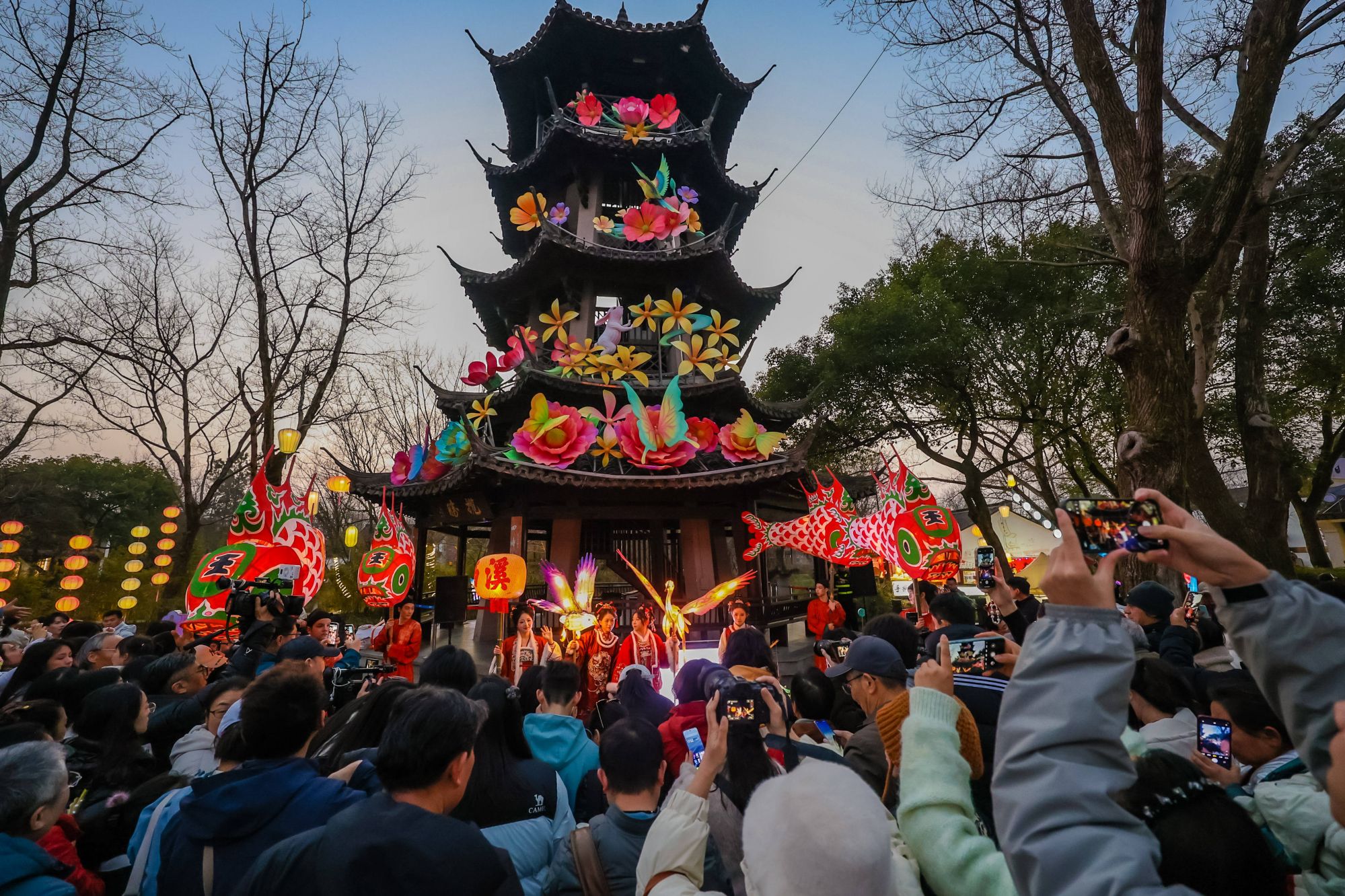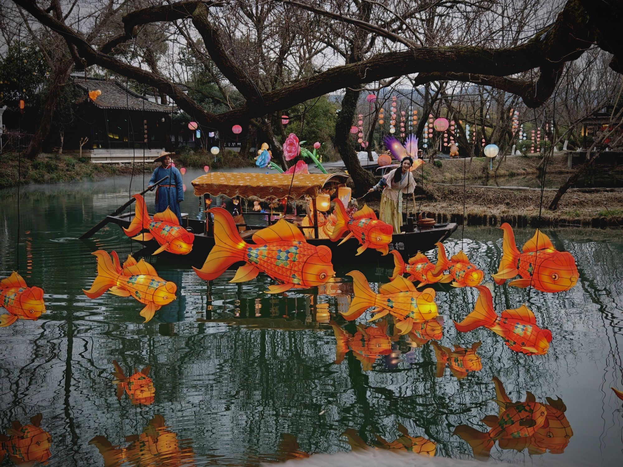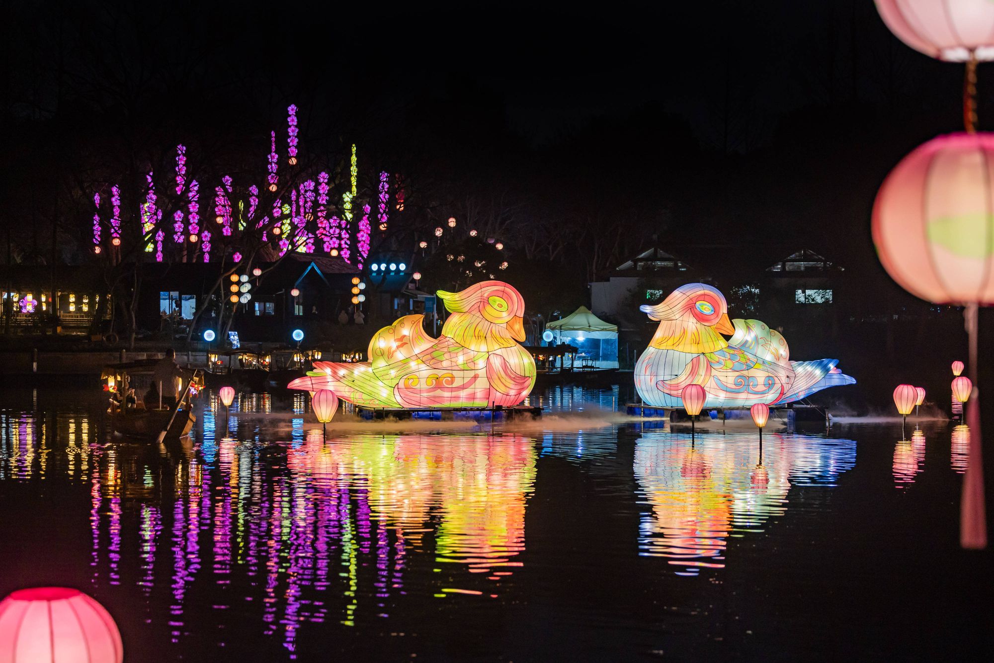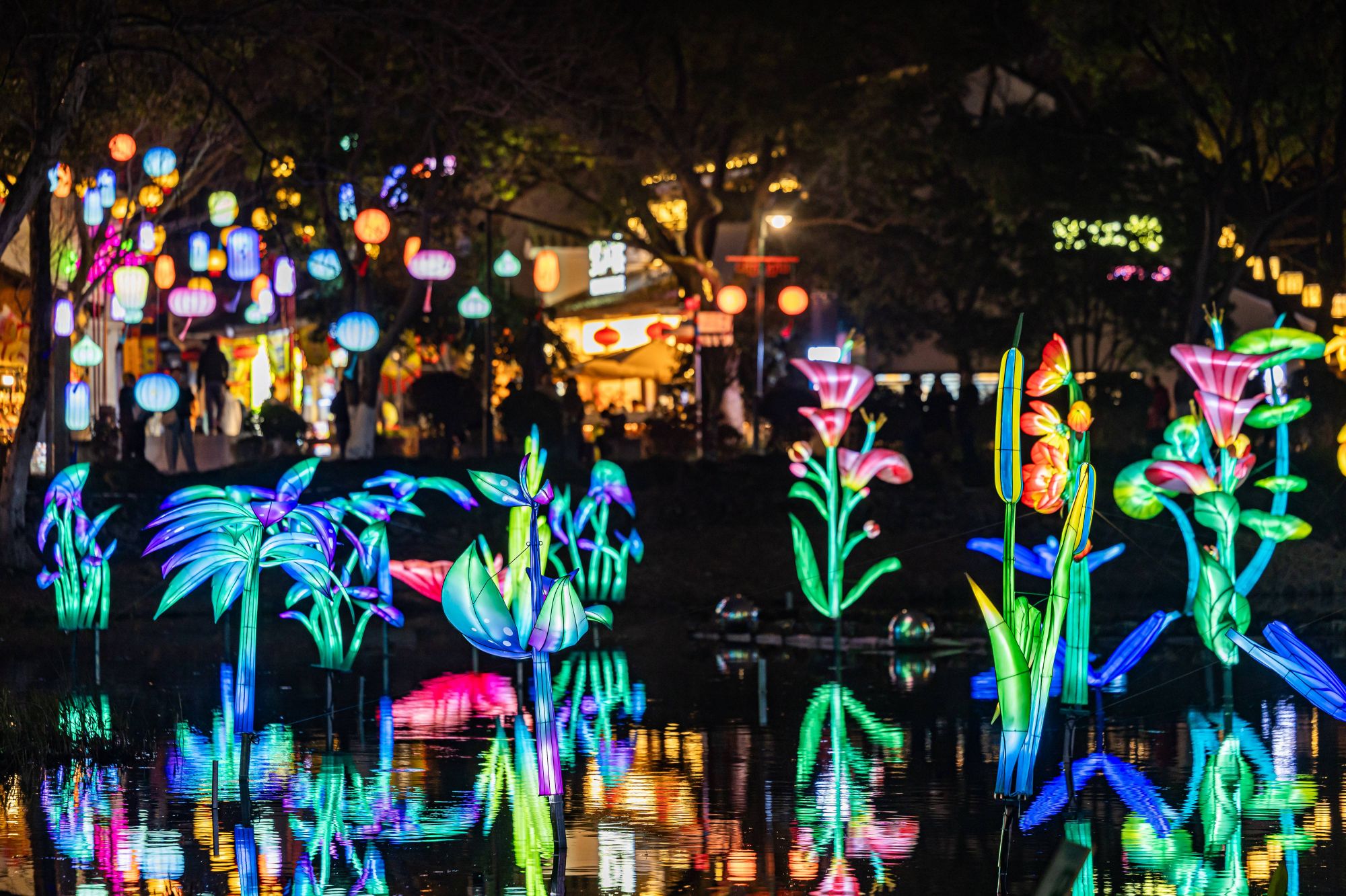北门的烟花树、蒋村慢生活街区百鸟灯街、河渚塔的繁华灯塔、九曲桥的灵泽秘境……十几个特色赏灯场景,超千盏花灯如梦如幻,开启元宵夜的赏灯之旅。陆地漫步,目之所及皆是璀璨灯影,一步一景皆是江南韵味;乘坐西溪花灯摇橹船泛舟水上,更是独有意趣,摇橹穿行于碧波水道,灯影与水面倒影交织成画,蓝调时刻拍照氛围感拉满,独特的水上视角让赏灯体验更具层次感。