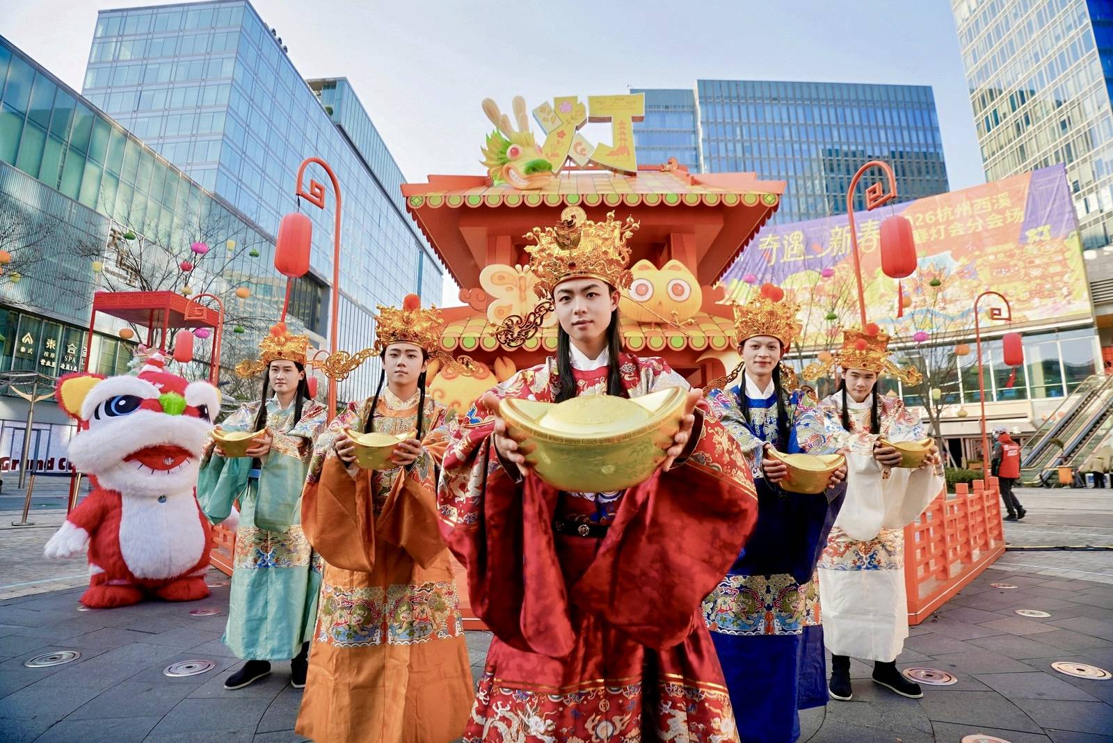 值得一提的是,作为西溪湿地新春灯会独家分会场的杭州远洋乐堤港,以《奇遇新春》为主题装置,联袂自贡非遗彩灯匠人,将童趣插画还原为流光实景,同步开启元宵欢庆模式。